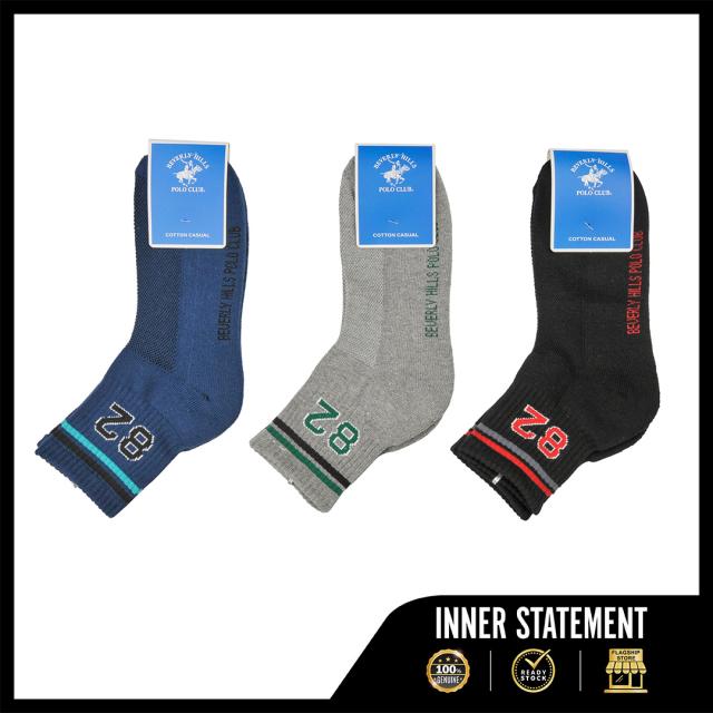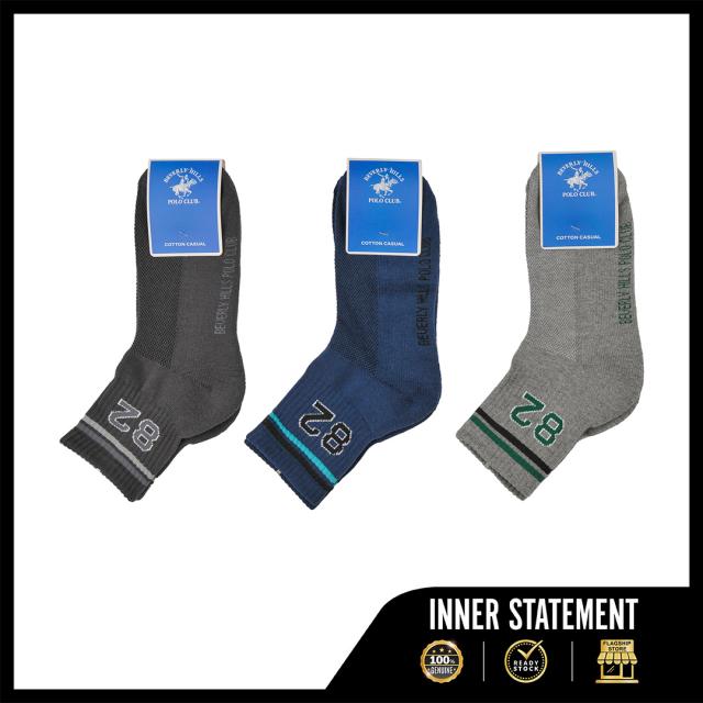 Beverly Hill Polo Club 3 Pieces Cotton Spandex Quarter Length Sport Socks | BMS379147