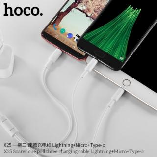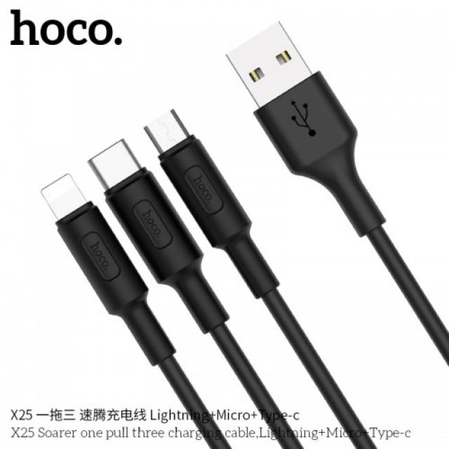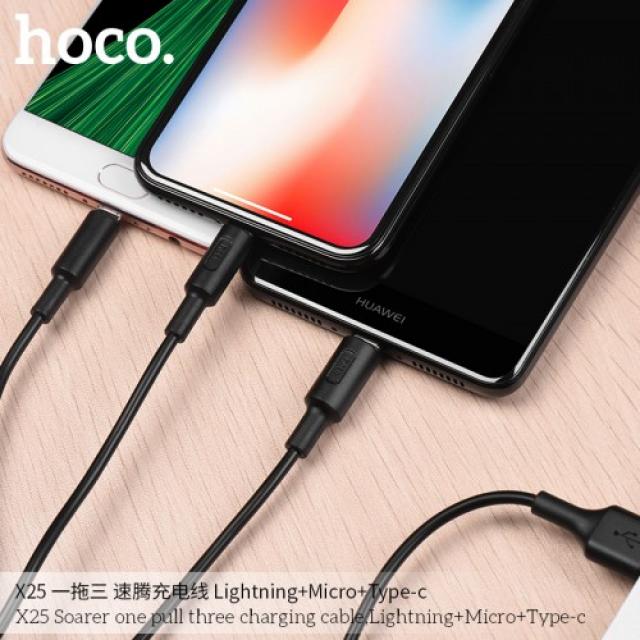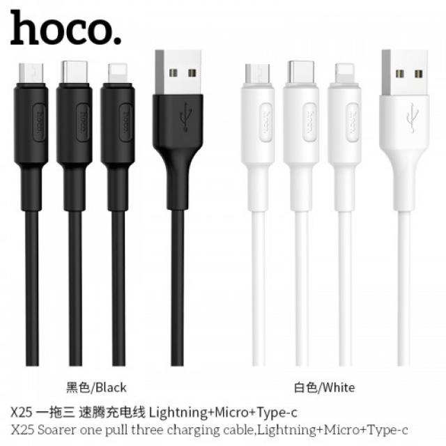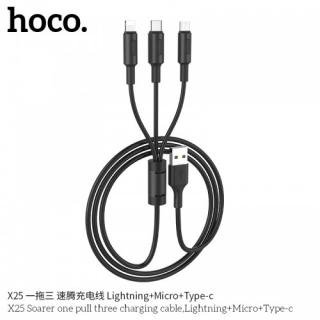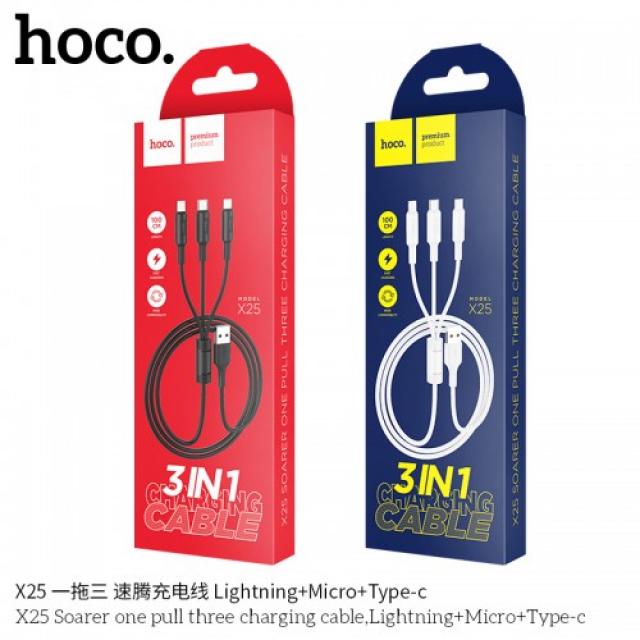 HOCO X25 SOARER ONE PULL THREE CHARGING CABLE (3 IN 1)